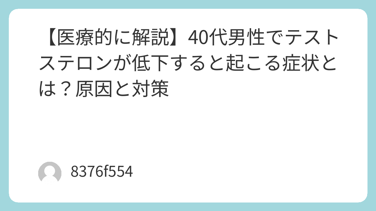 テストステロンは筋肉、精神状態、性機能など多くの生理機能に関わるホルモンであり、低下すると様々な身体・精神症状が現れることがあります。