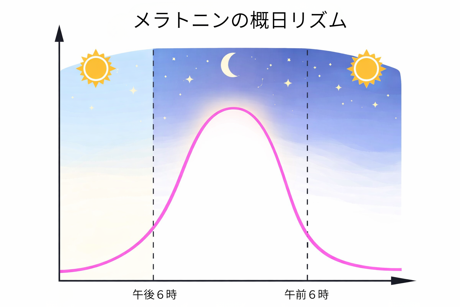 メラトニンは睡眠を調整するホルモンで、夜間に分泌が増加します。