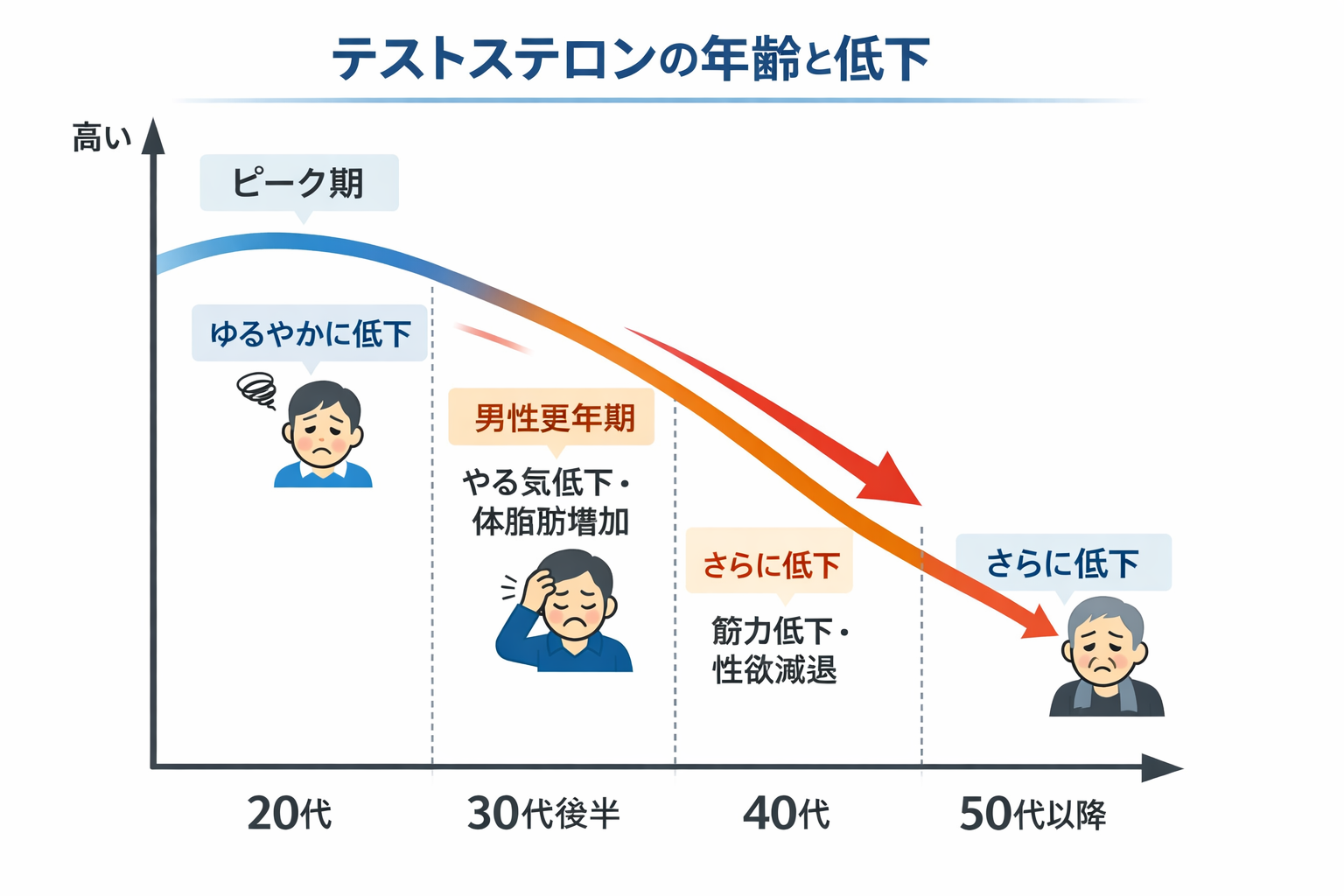 ・テストステロンは20代後半から低下する可能性