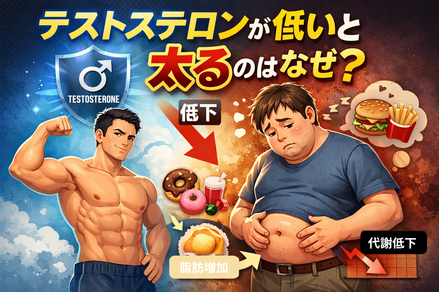 ✔ テストステロンが低いと太りやすくなる理由